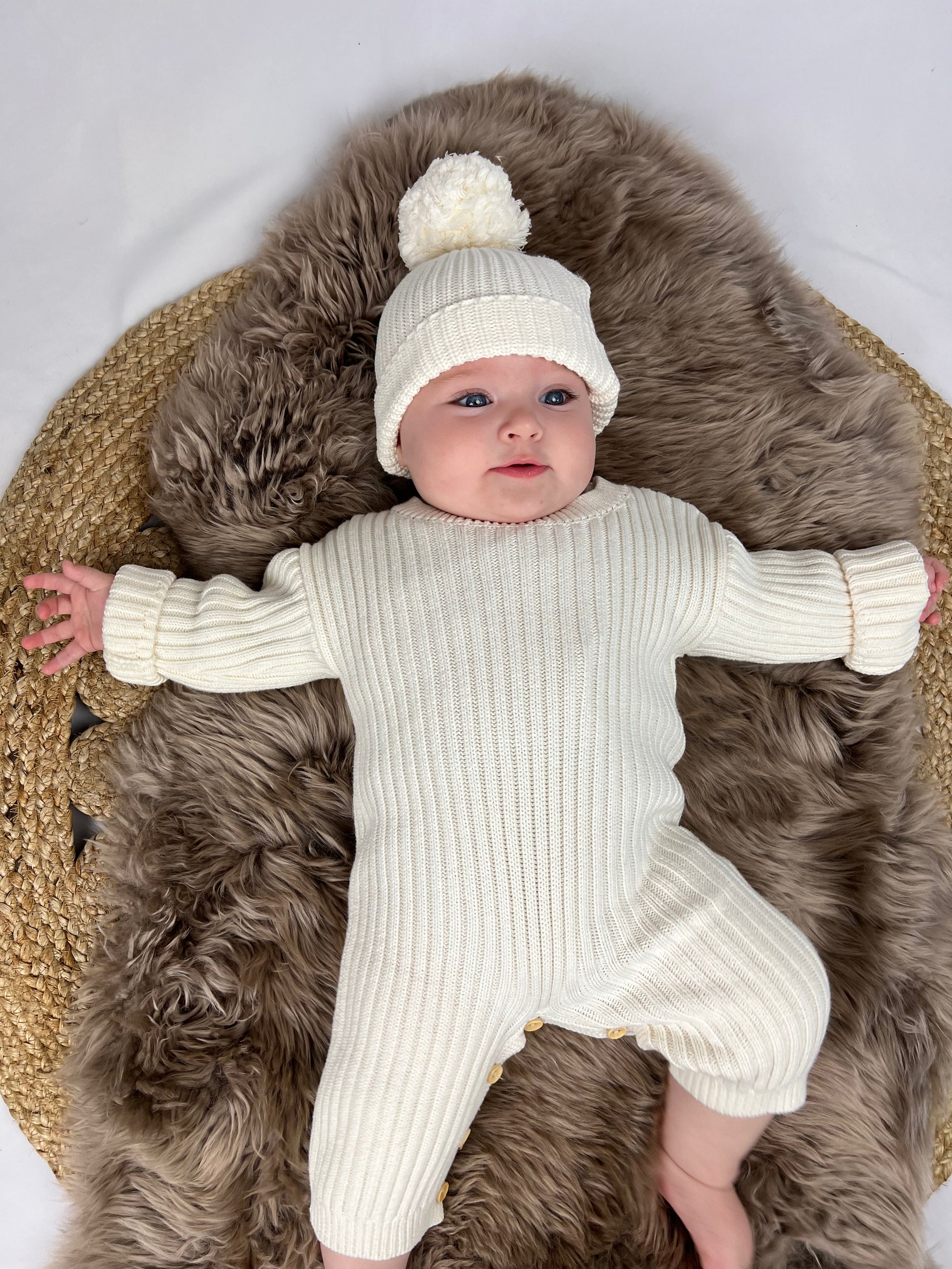 Hochwertiger Strampelanzug aus unserer Knit Winter Collection. Der Strampelanzug ist aus 100 % feinster Baumwolle liebevoll gestrickt und ist ein kuschelig weiches Must Have für die kalten Monate. Dein Baby wird sich darin rundum wohl fühlen.