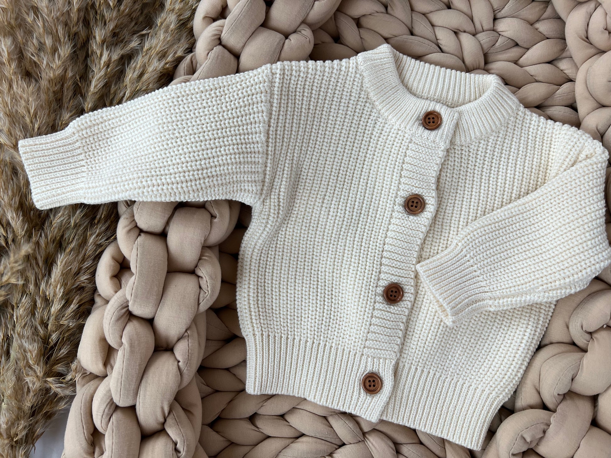 Hochwertiger Cardigan aus unserer Knit Winter Collection. Der Cardigan ist aus 100 % feinster Baumwolle liebevoll gestrickt und ist ein kuschelig weiches Must Have für die kalten Monate. Dein Baby wird sich darin rundum wohl fühlen.